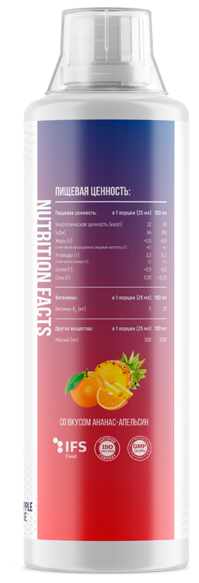 вода, фруктоза, тримагний дицитрат, кислота (молочная кислота), гидрохлорид пиридоксина, консерванты (бензоат натрия, сорбат калия), подсластители (цикламат натрия, сахарин натрия), ароматизаторы.