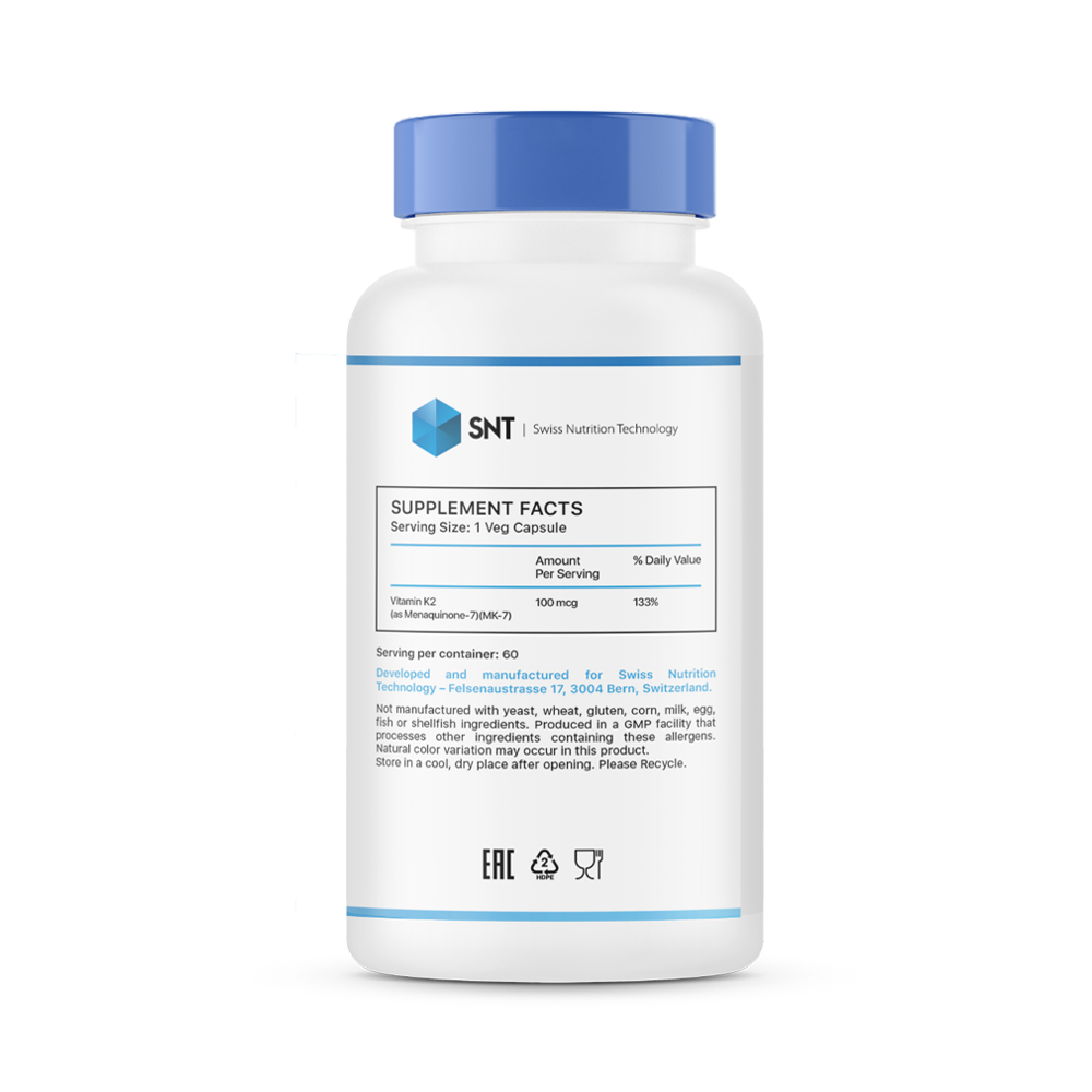 Известно, что витамин К отвечает за синтез нескольких факторов свертывания крови и формирование сильных, здоровых костей. Vitamin K2 MK7 - это уникальная биодоступная форма витамина К2 без сои, которая играет ключевую роль в поддержании здоровья артерий благодаря своей способности обеспечивать правильный обмен кальция в кровеносных сосудах и артериях.